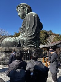 再び高徳院。横から見ても迫力十分です。熱心に「見学地メモ」を取っています。