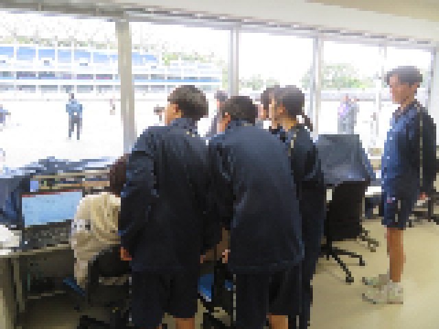 会場を映し出す大型ビジョンのカメラを操作を担当。レースの様子をしっかりと映し出し...