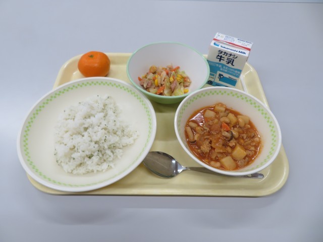 12月15日の給食です。丸ごとみかんでしあわせな気分です。