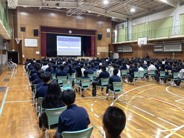 先日、令和7年度の生徒会役員選挙が実施されました。立候補者は、学校をより良くしたいという熱い思いを堂々と演説し、聴衆である生徒たちも真剣な眼差しで耳を傾けていました。