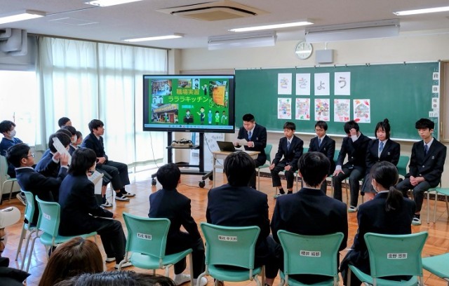 本日、本校のききょう学級の生徒による学習発表会を開催しました。前半は、学習の成果として修学旅行、職場体験、職場実習、世界遺産についてなどそれぞれ体験したり調べたりした結果をスライドにまとめて一人ずつ発表しました。保護者の方の参観もある中で緊張しながらも皆一生懸命がんばっていました。また美術や家庭、陶芸教室、栽培の授業、それぞれの教科で作成した作品も視聴覚室に展示され、おいしそうな野菜と力作が並びました。そしてダンス発表は決めポーズもばっちり決まり素晴らしい発表会でした