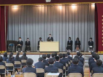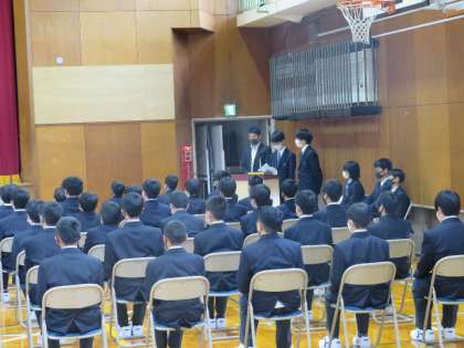 生徒会役員と専門委員会の委員長が1年生に生徒会活動について説明しました。