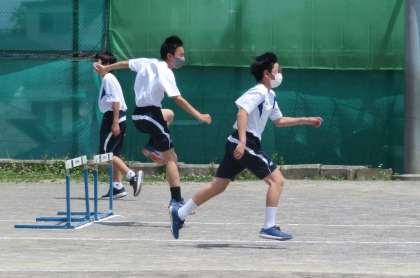 6月5日の体育大会に向けて準備を進めています。新型コロナウィルスの感染拡大防止策として緊急事態宣言が発令されており心配ではありますが、感染防止に配慮しながら徐々に準備を進めています。ハードルとリレーのバトンパスの練習の様子です。