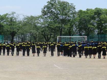 5月10日創立50周年記念として全校生徒による航空写真を撮影しました。晴天に恵まれる中、生徒が校庭に校章の形になるよう並び、上空のセスナ機から撮影しました。