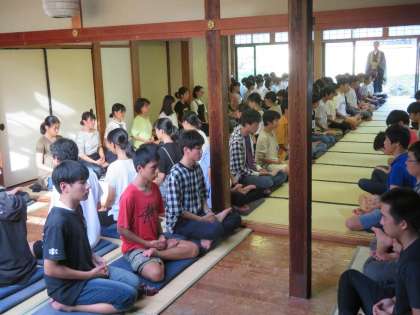 修学旅行二日目は班行動でした。自分達で決めたコースを交通案内やマップを便りに移動しました。日差しが強く残暑の厳しい天気でしたが、楽しく行動することができました。最後は建仁寺に集合し座禅体験をしました。静寂な雰囲気の中で心を落ち着かせることができました。