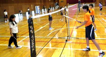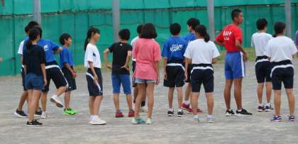 連接の小学校と連携して、児童が中学校の部活動を体験する日を4日間設けました。中学生に教わりながら一生懸命に体を動かしていました。