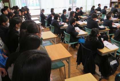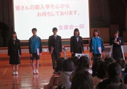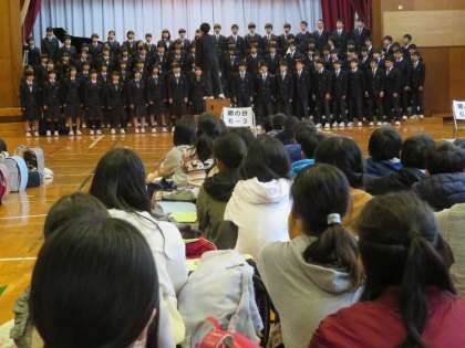 2020年1月17日 小学生が中学校訪問 公開日 2020/04/05 更新日 2020/04/05 お便り・お知らせ 学区の藤の台小学校と本町田東小学校の6年生を対象に「中学校訪問」を実施しました。授業見学の後、2年生の合唱発表や生徒会役員による中学校生活についての説明を聞きました。入学前に中学校の雰囲気を感じて通学しやすくなることを願って行われるものです。