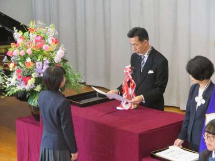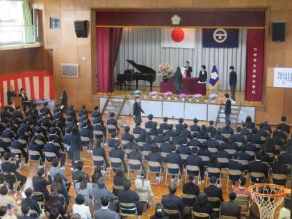 天候に恵まれ柔らかな春の日差しの中第49回卒業式が行われました。今年度は新型コロナウィルス感染症防止のため卒業生とその保護者、教職員のみが参加して行われました。一人一人がしっかりと卒業証書を受け取り、新たな世界に羽ばたいていきました。式辞と卒業生の言葉は学校だよりでご覧ください。
