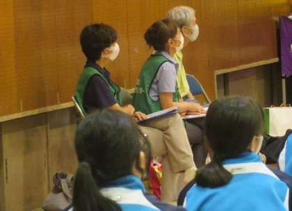総合的な学習の時間における福祉をテーマにした学習の一つとして、1年生が「認知症サポート養成講座」を受けました。近隣の福祉施設の方と連携して、高齢者との実生活におけるかかわり方や配慮しなければならないことについてお話を伺いました。