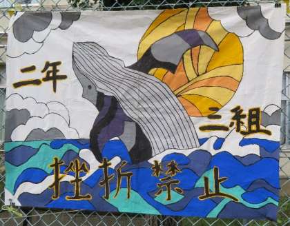 スポーツ大会の2年生の学級応援旗です。