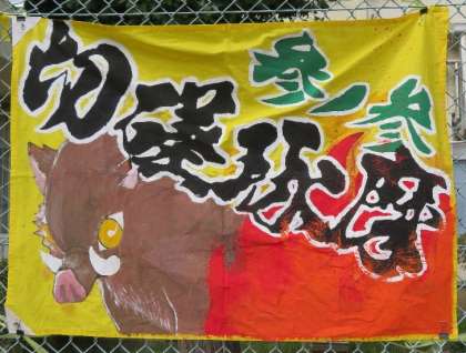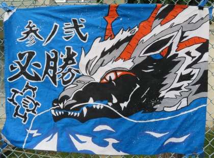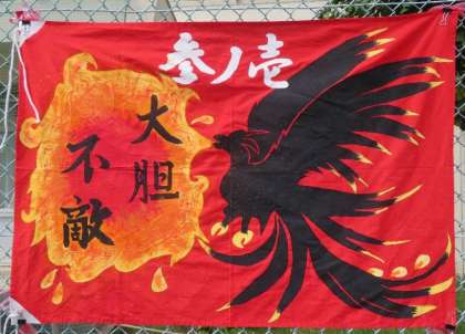 スポーツ大会の3年生の応援旗です。今年初めての試みで各学年各クラス工夫を凝らして制作しました。当日はこの応援旗を使って学級紹介をパフォーマンスを交えて行いました。