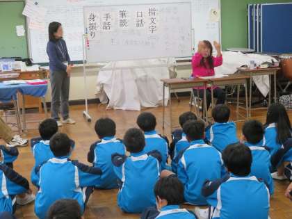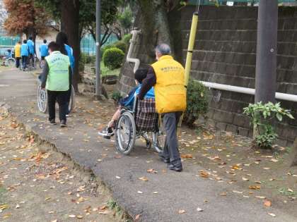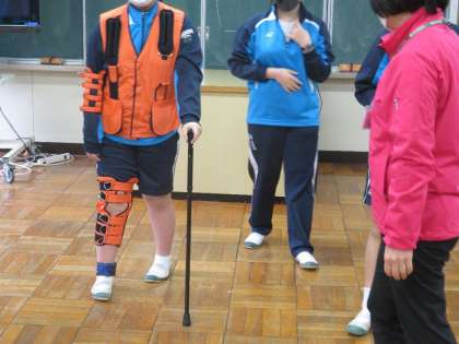 1年生の総合的な学習の時間では、福祉についての学習をすすめています。11月27日には、「町田市社会福祉協議会」や「手話サークルまちだ」などの団体の方にご協力いただいて、体験学習をしました。車椅子を使用されている方の補助の仕方や高齢者の体の負担を理解するための疑似体験、聴覚に障がいのある方を支援するための手話などについて学習しました。
