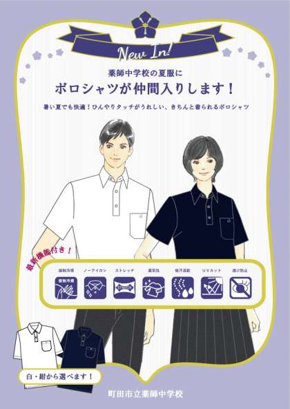 来年度から夏用のポロシャツを導入します。新1年生は全員着用となりますが、新2・3年生も希望する生徒は着用できます。