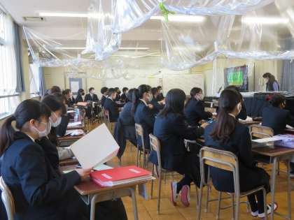 新型コロナウィルス感染状況から緊急事態宣言が出され、音楽の授業では歌唱ができません。感染防止に配慮して鑑賞の学習などを中心に学習しています。