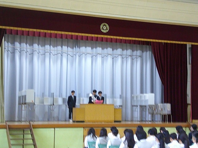 10月3日(金)生徒会役員選挙が行われました。生徒会朝会で生徒会や各委員会の取り組みの發表を見ていると、自分たちの力で学校をより良くしていこうとする力強さがありました。3年生から1,2年へバトンタッチです。