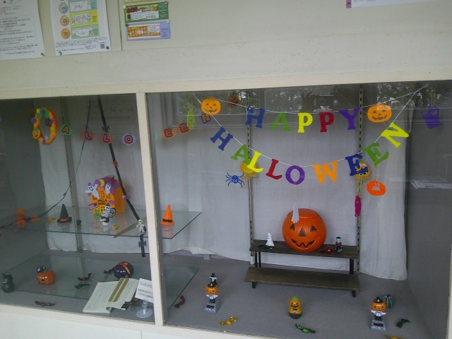 少し前までは、お月見の装飾だった図書室前が、今は、ハロウィンの装飾に変わっています。図書室前は、司書さん方が季節ごとに工夫をした装飾で、みなさんが図書室に来たときに楽しめるようにしてくださっています。読書の秋、図書室に足を運んで、朝読書の本を選んでみてはいかがですか。