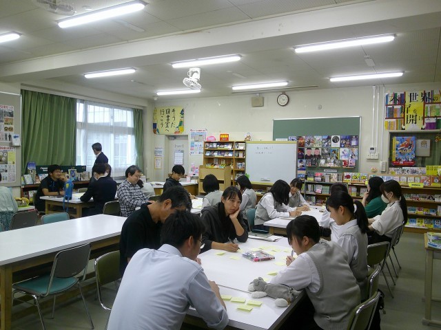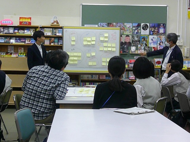 また、午後には学校運営協議会を行い、その後、学校運営委員の方々、地域、保護者も皆様、生徒代表で「熟議」を行いました。題は「楽しい学校とは」です。
