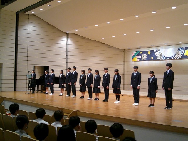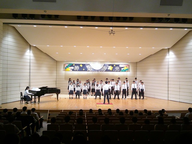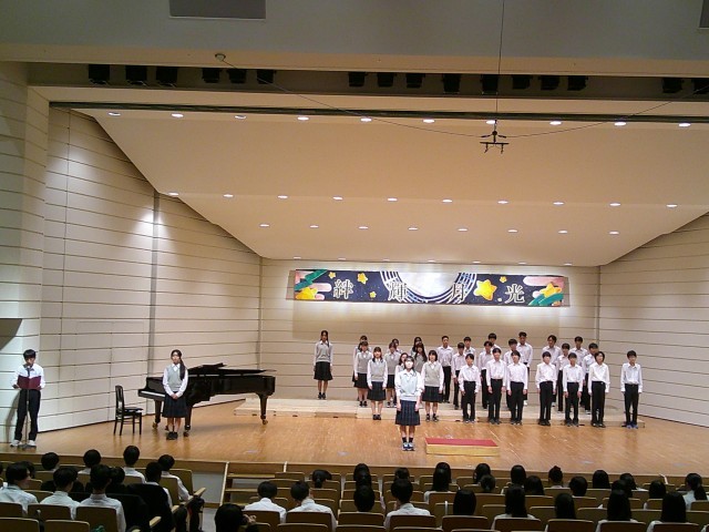 合唱祭スローガン「絆輝月光」(はんぎげっこう)は、合唱祭を通して絆を深めたい、一人一人が輝いて楽しかったと思える思い出をつくりたい、月光のように美しく、輝くような合唱をつくりたいという想いが込められています。