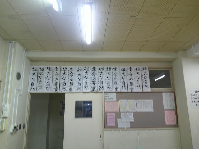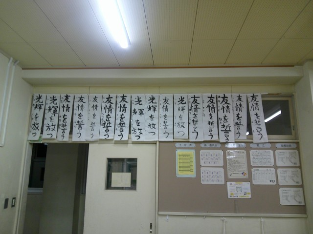 各学年の各教室に書き初めが掲示されました。国語係の生徒がしっかりと掲示しました。キリッと引き締まった3学期らしい教室です。
