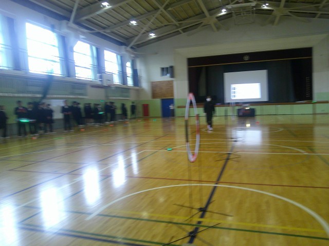 東京都の事業である「笑顔と学びの体験活動プロジェクト」で本校はドローン操作体験を行いました。(株)レッドクリフから9名の方にご来校いただき指導していただきました。(株)レッドクリフは国内外の様々な場所でドローンショーしている。最先端の会社です。ドローンがどんな場面で使われているのかや3分程度のドローンショーも実際に見せていただきました。班に分かれてタブレットを操作して離陸、輪をくぐり、指定された場所に着陸するなどのドローンを操縦し、生徒たちも楽しんでいて笑顔が見られました。ドローンが様々な分野で活躍していることを学び、生徒自身が「ドローンが役立つ場面」を考えるきっかけとなりました。