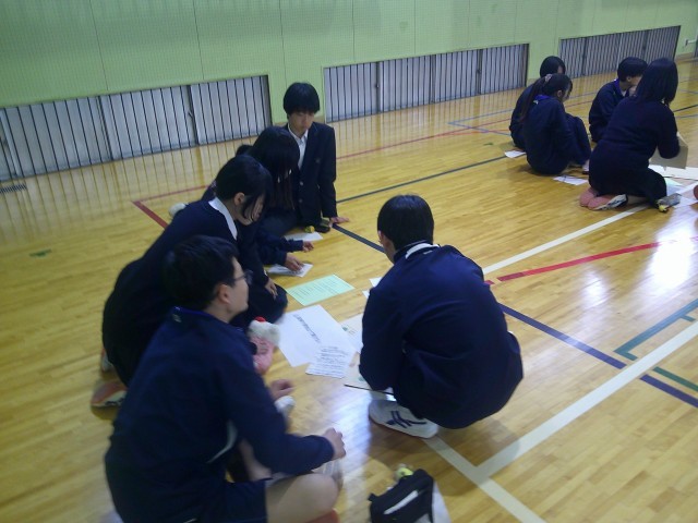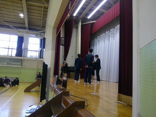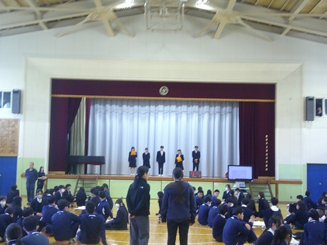 後期生徒会が、企画運営した全校交流謎解き大会が開催されました。それぞれの学年から2〜3名で班が作られて、ぜんぶで6問の謎解きを協力して解いていくゲームです。生徒会役員が、問題を解くためには各学年から聞かないとわからないような問題もつくっているので、自然と学年間で話し合いながら進めていました。上位2チームが表彰され、協力して行う楽しさも味わっていました。3月に全学年が交流できる行事を生徒会がつくり上げました。