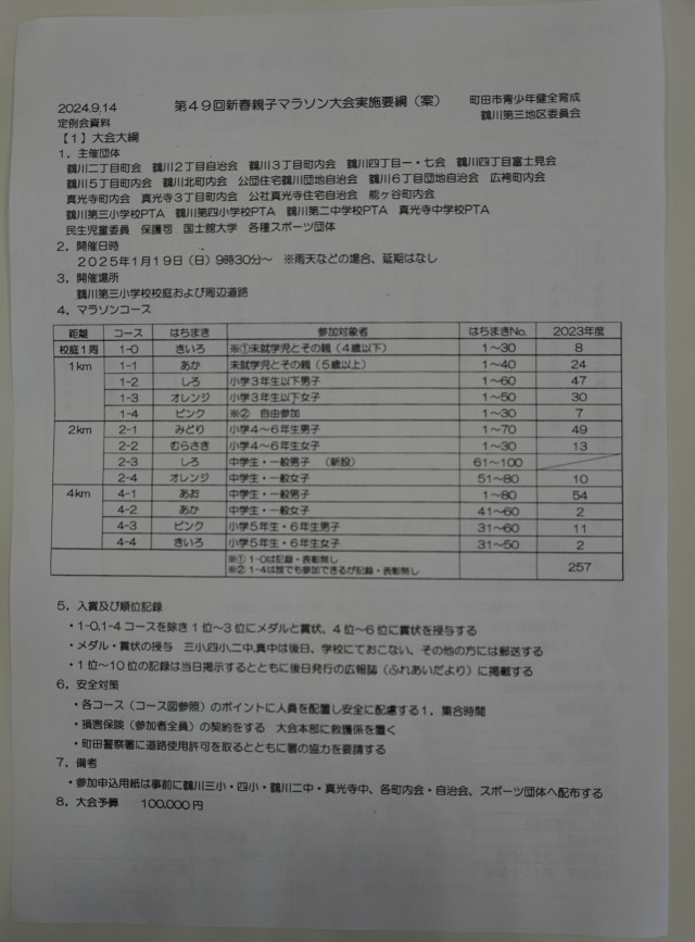 恒例の「新春親子マラソン」の要項が発表されました。