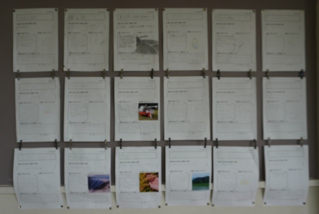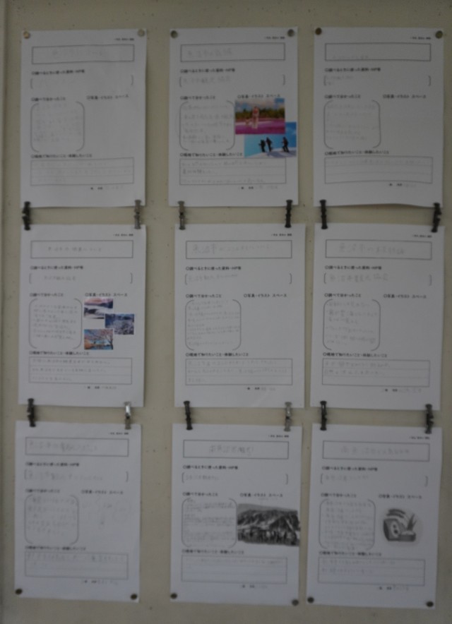 「南魚沼」について調べた新聞が掲示されれています。