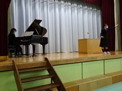 写真中:校歌を歌っています