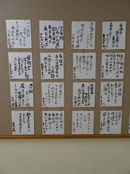 国語の時間に校庭や校舎を吟行し、3年間の思い出を重ね合わせて句をつくりました。