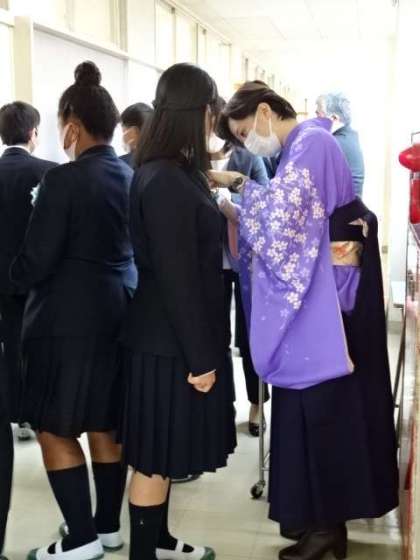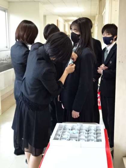 卒業生の胸元に、胸花を先生方がつけてくださっていました。