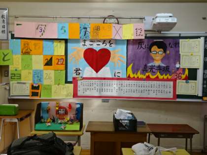 クラス目標や卒業カウントカレンダー、賞状等々、思い出がたくさん飾ってあります。