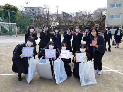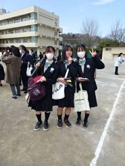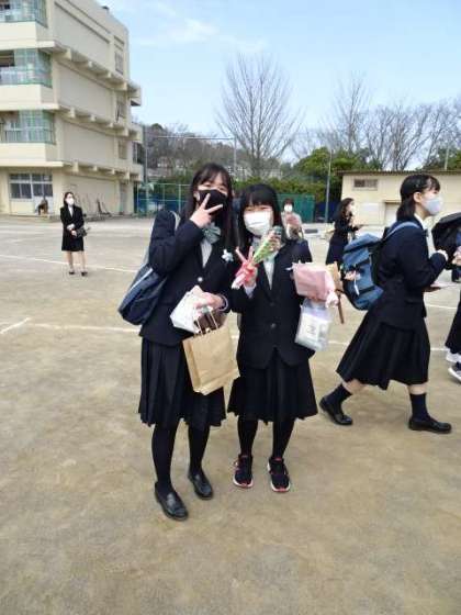 写真中:美術部です。後輩から先輩に色紙と記念品のプレゼントです。