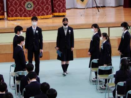 写真中・下:卒業生退場。学年代表委員が先頭で退場します。