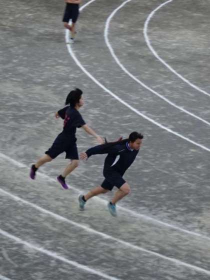 陸上競技部は女子のリレーが出場するため、バトンパスを中心に練習をしていました。