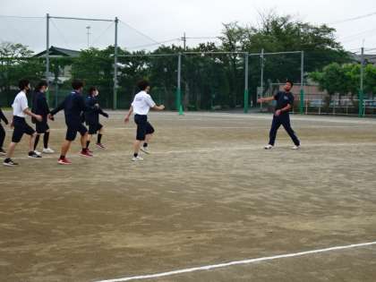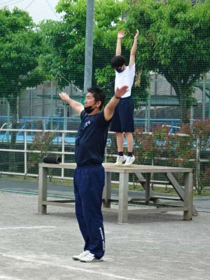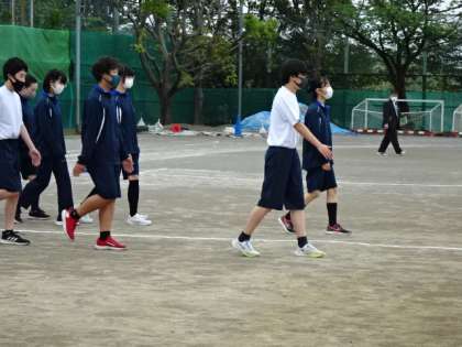 これまでは、生徒門辺の入場門から入場し、トラックを1周していましたが、コロナ渦の対応を考え、生徒席から入場に変更になりました。