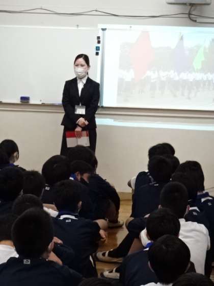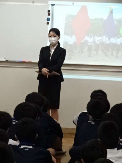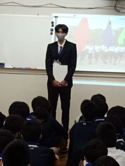 全校朝礼はミートでしたが、実際に生徒の皆さんの前でのあいさつで、ドキドキしたようです。