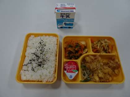 唐揚げに、酢を使用した特製さっぱりソースをかけました。酢には疲労回復効果や抗菌効果があります。