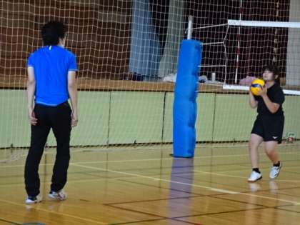 バレーボール部は、男女合同での練習です。