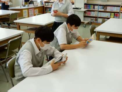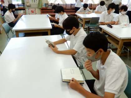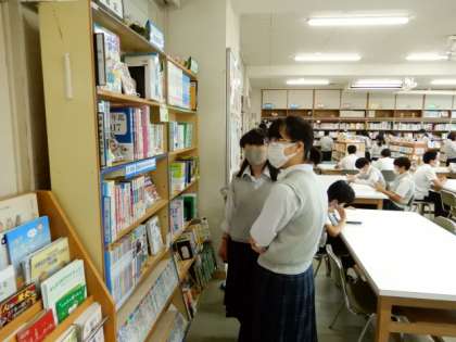7月12日(月)の生徒会朝礼で図書委員長の呼びかけで、たくさんの生徒が本を見に来てくれました。