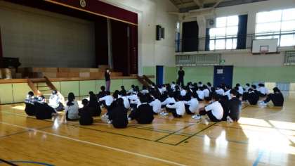 生徒会朝礼に後、1年生は学年集会を行いました。