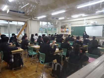 6校時 明日の確認をした後、3年生は明日に向けて実行委員を中心に決起集会(?)です。