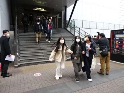 写真は新横浜駅の集合場所に向かう生徒たちです。