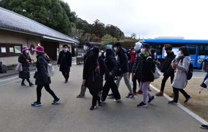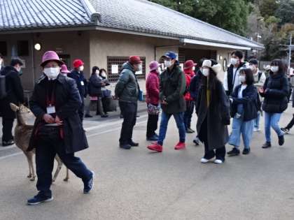 ボランティアガイドさんと奈良公園を見学します。