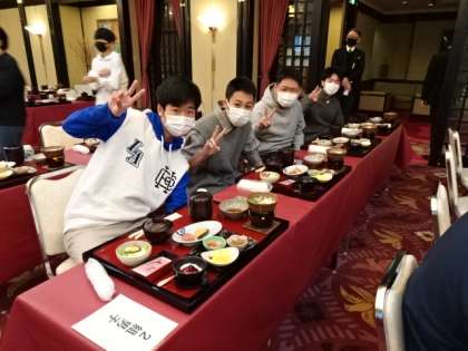 写真下:男子で一番早く食事場所にこたみなさん