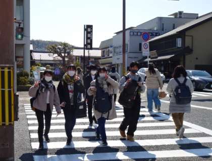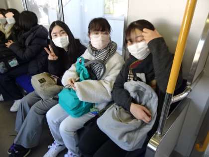 写真上・中:京都に向かう生徒と遭遇