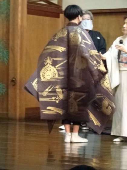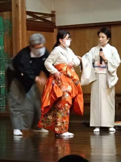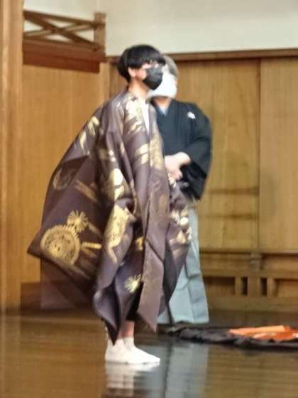 写真上:両袖を抜いて、舞う時もあります。