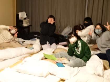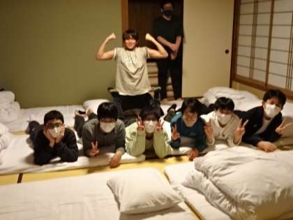 お風呂に行っている人もいて、全員撮影できませんでしたが、みんな元気です。