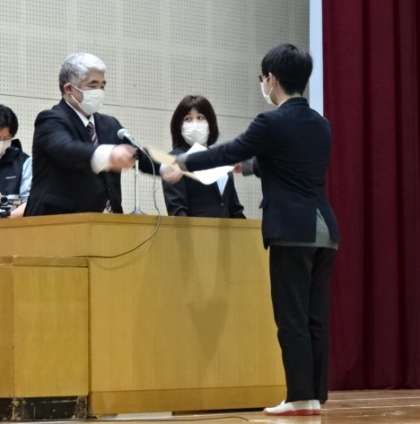 写真上:卒業証書授与