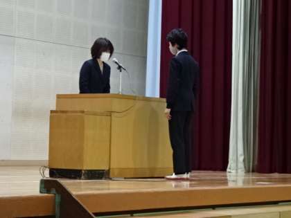 写真中:PTAより記念品贈呈