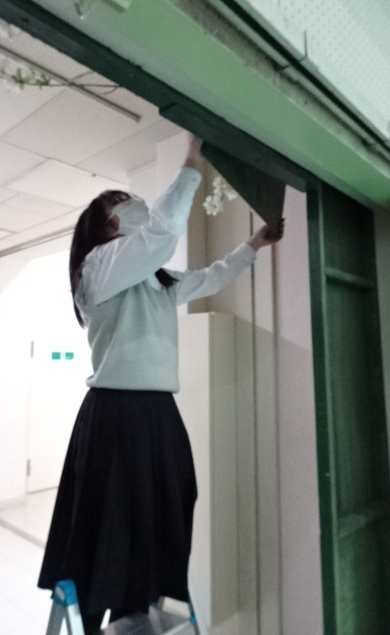 生徒会役員は、入り口の飾り付け担当です。